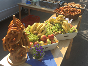 Auch frisches Obst und Brezeln standen zur Verfügung. Für die musikalische Unterhaltung sorgte der Dramfelder Posaunenchor