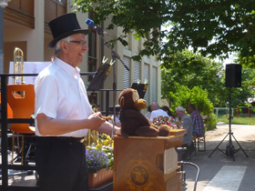 mit fröhlicher Musik. Herr Dr. Siemes hatte seine Drehorgel samt Zylinder und Affen mitgebracht