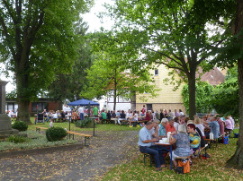 Es war sommerlich warm, als sich an diesem Sonntag unter den Bäumen im Park an der Johanniskirche an die zweihundert Menschen zusammenfanden, um gemeinsam zu frühstücken.