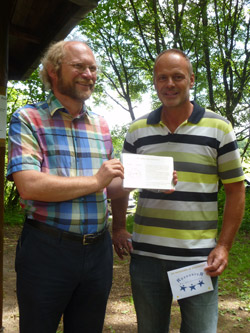 Es war der Wunsch geäußert worden, die Schilder für die Dorflinde zu erneuern. Die Kosten dafür wurden von uns übernommen und die zwei Plaketten konnten dann auf dem Grillplatz überreicht werden.